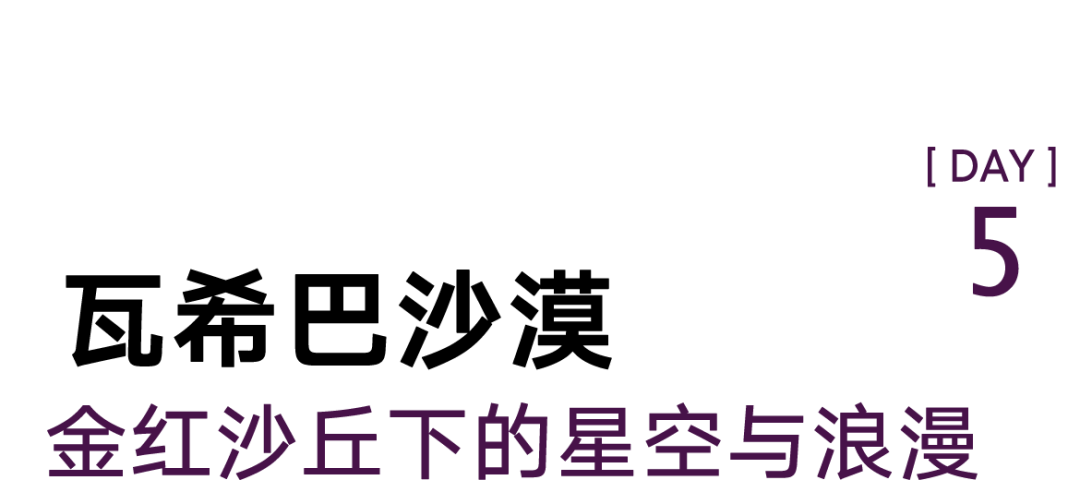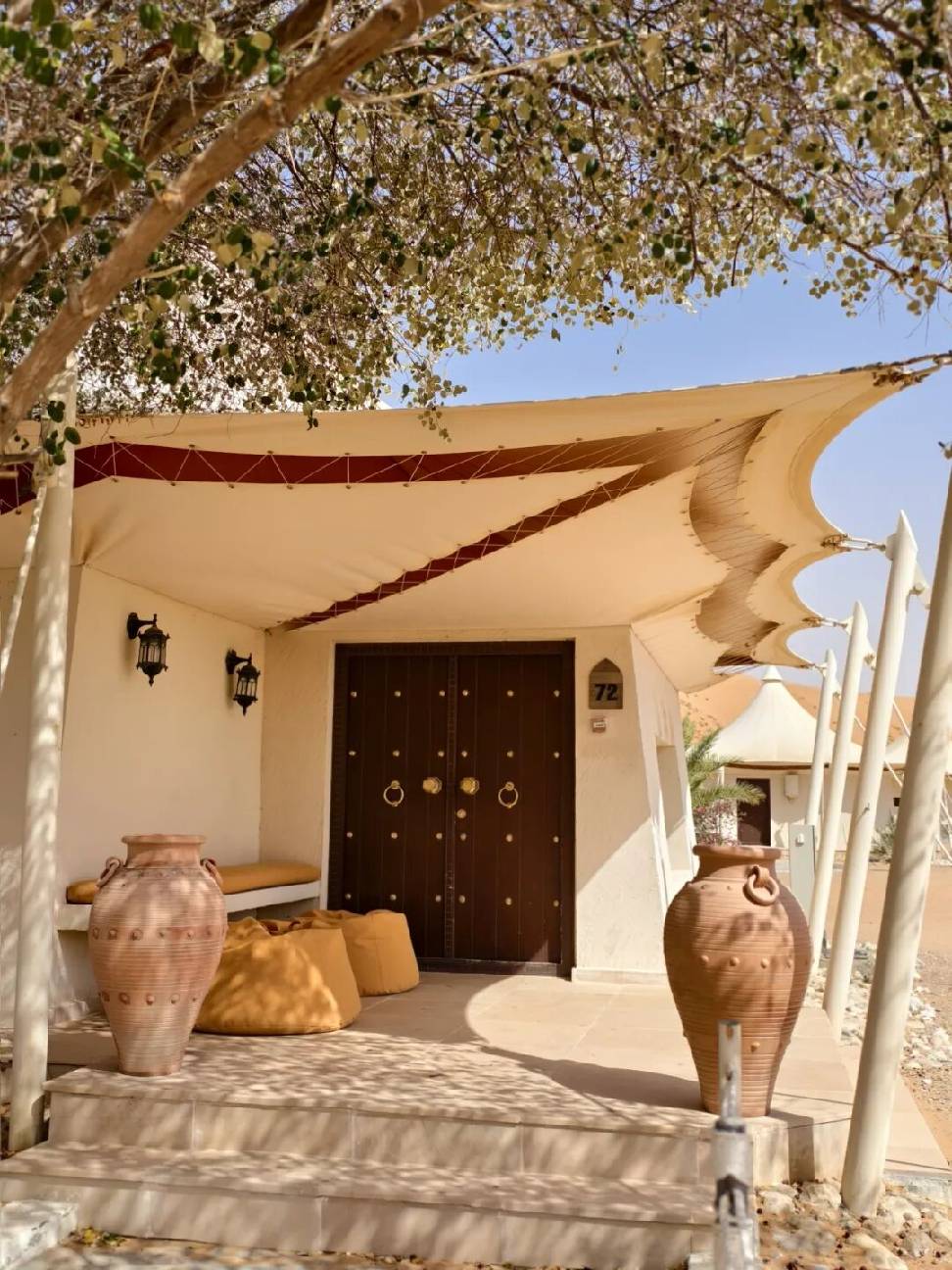 旅程的第五天,我们驶离公路,进入了瓦希巴沙漠的腹地。入住的奢华的贝都因风格帐篷营地,完美融合了野性与舒适,帐篷内空调、热水一应俱全,而门外便是无垠的沙海。