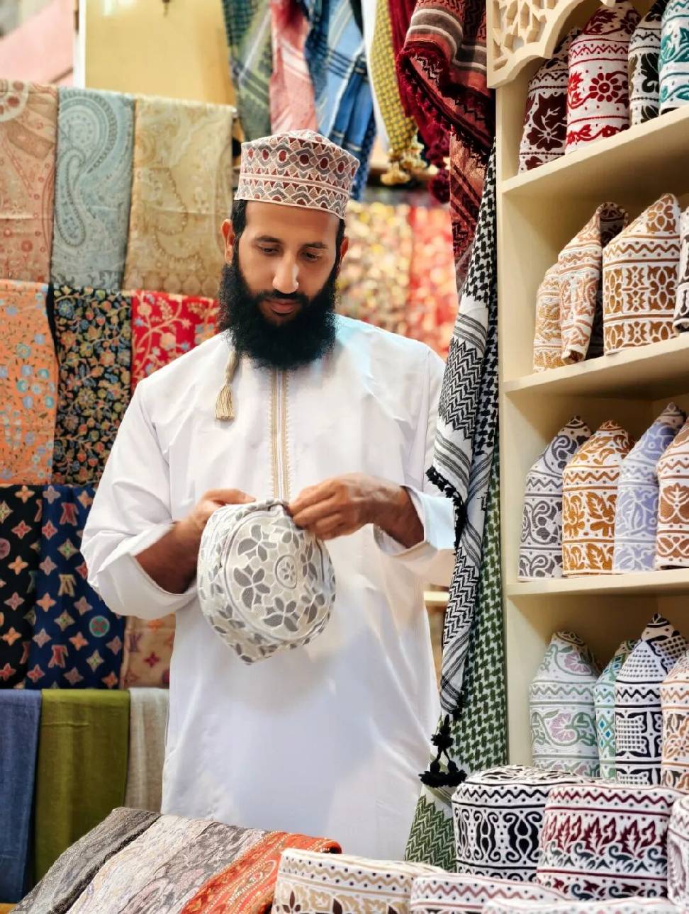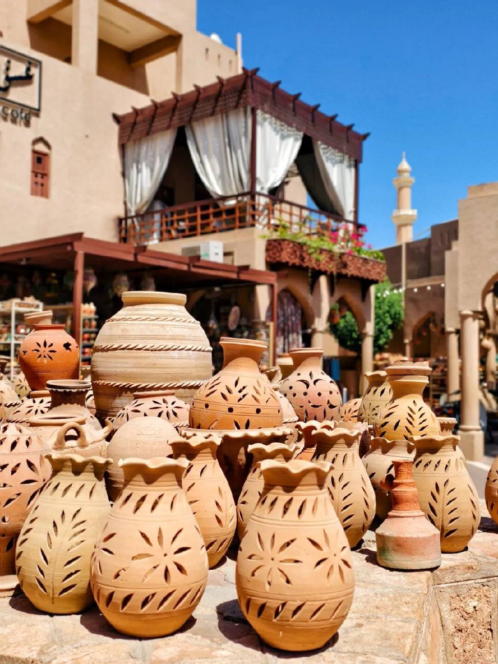 古堡旁的尼兹瓦传统市集一定别错过,空气中交织着乳香、香料与新鲜椰枣的甜香,穿着传统白袍的店主们在阴凉处不紧不慢地做着生意。这份从容,与市集里流淌的千年时光如此相得益彰。