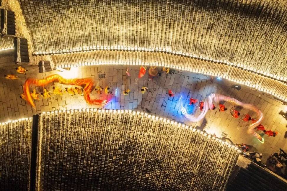 步入信阳市商城县的平安驿·逗街,青砖灰瓦勾勒着豫南民间的轮廓。白天,木雕师傅的刻刀下木屑轻飞,糖画艺人腕转糖落,剪纸的红色在匠人手边绽放;待到日暮,在街巷的转场间,戏楼上“火绫子”舞动火光,“花挑舞”摇曳生姿。