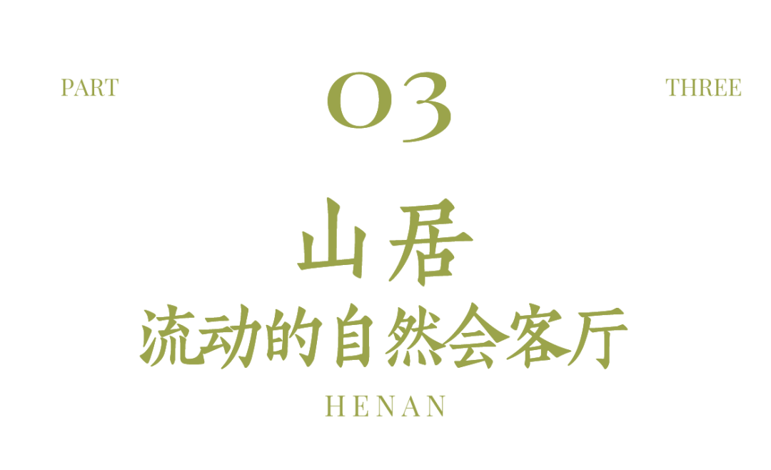 在河南,真正的宁静与开阔,往往需要向山野深处寻访。这里的“潮”,是一种清醒而自觉的生活美学转向,主动暂别喧嚣,在自然的辽阔中,重新思索居住与社交之间的距离。山居不再仅是避世的退隐,而成为一种向自然敞开的、流动的会客厅。人们在此以山川为幕,以四季为景,将生活安放于云海、崖壁、峡谷与溪流之间,从而在身体栖居与心灵交往的双重维度上,实现一种深度的舒展与重建。在这里,窗是画的边框,自然是永恒的背景。
