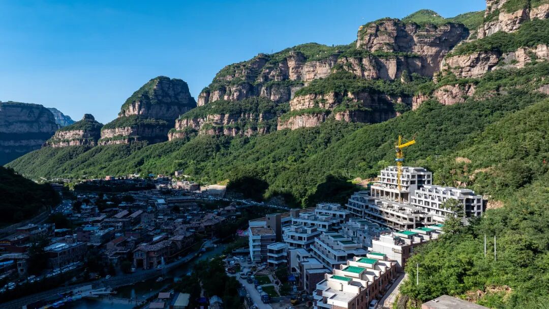 在太行山大峡谷,这里的建筑是直接从山体中生长出的答案,就地取材,石头砌墙,石头做瓦,石头铺路,让屋舍成为山岩的延伸。