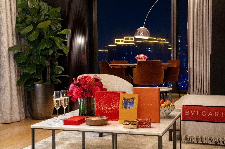 臻璨新春,马年迎福。下榻北京宝格丽酒店高级套房及以上房型,悦启新春绮迹居享计划,尊享新春限定艺术日历、年糕礼盒及新春专属欢迎礼遇。亮马河畔的和煦暖阳与客房内精美的意式设计交相辉映,300织高密床品和手工定制的意大利家具共同营造出高雅温馨的冬日氛围;精巧的榆木壁龛犹如艺术品,引领宾客步入优雅舒适的会客区,在宁静美好的晨光里,共享精致的客房早餐,为居旅时光勾勒新年伊始的温馨画面。亦可在套房私密氛围中,设一场新春家宴。精制佳肴承载吉祥美意,将团圆升华为优雅仪式。于北京宝格丽酒店套房的静谧空间内,与亲朋细语慢叙,温暖时光自成画卷。