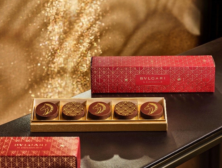 途经宝格丽甜品店,可臻选新春限定巧克力。意大利巧克力大师Gianluca Fusto匠心呈现生姜红枣、红豆陈皮风味,融汇骏马祥纹与宝格丽Divas’ Dream作品美学,每一颗皆是对中国传统佳节的甜蜜致敬。