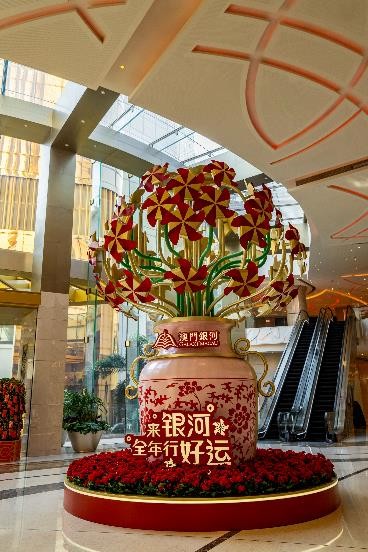 此次新春巡礼以象征好运、寓意招福的“风车”为灵感,特设多架风车装置遍布「澳門銀河」,随风旋转、转出好运。宾客可随心转动这些特设的风车,寓意“好运一转即发”,马年美好满载。银河时尚汇各处亦设有巨型风车年花,宛若盛放的桃花及水仙花风车翩然转动,寓意“风来运转,花开富贵”,宾客更可与亲朋好友完美“打卡”留念,以优雅之姿,与您共迎新一年!金闪红艳的风车布置与度假城金碧辉煌的建筑相互辉映,祝愿所有宾客将好运接好接满。