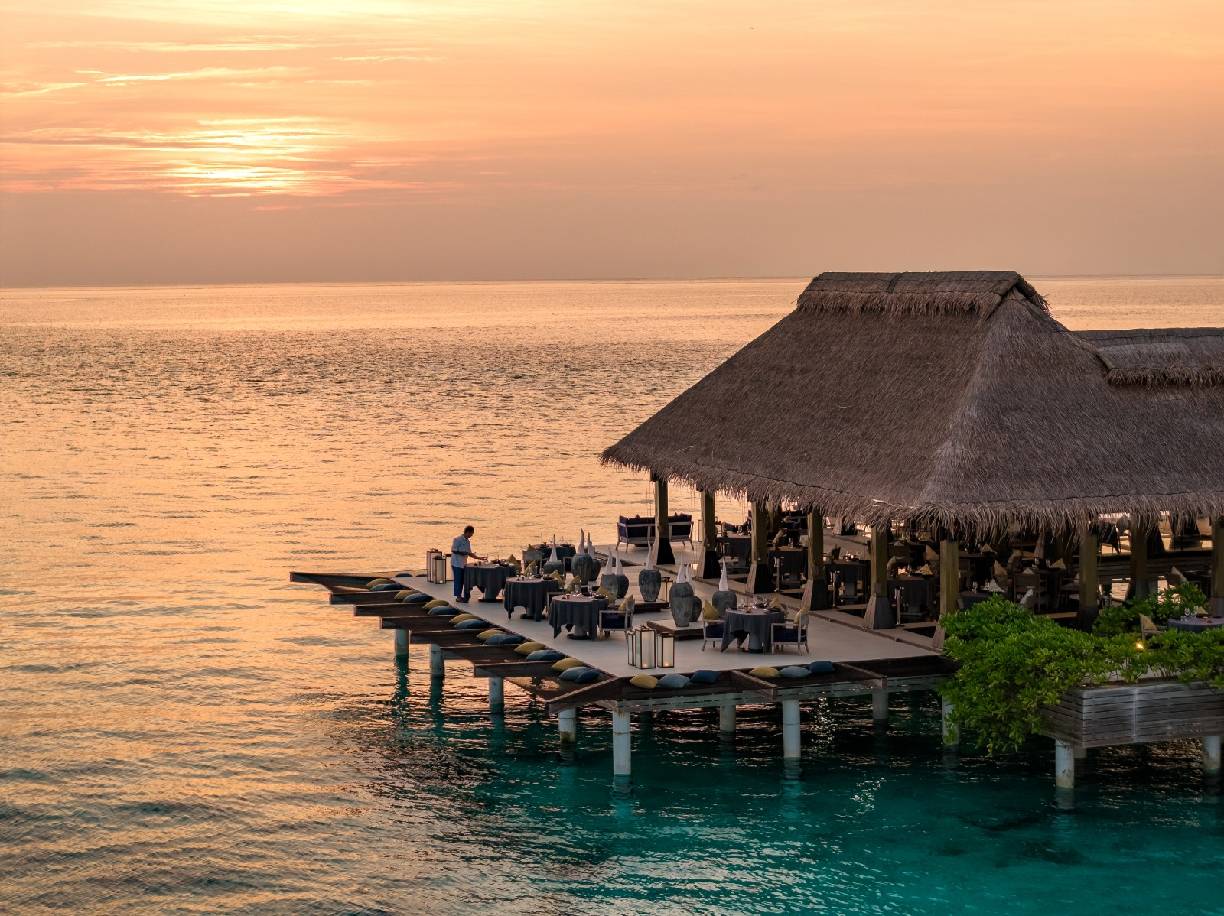 夜幕将至,视线从珊瑚礁转向远方天际。度假村的招牌精致餐厅 FireDOOR 依泻湖而建,玻璃地板可将脚下轻柔的水波尽收眼底。日落时分,天空从柔金渐变为深琥珀色,食客们相聚于此,一边品尝以当地为灵感的餐前鸡尾酒,一边目送落日余晖洒满海面。为让宾客深度体验海岛生活,度假村精心打造了两条专属体验之旅 ——回归本我与相伴同行,均适合三至四晚深度体验。宾客可在泻湖畔以日出瑜伽开启一天,午后探索珊瑚礁或驾船航行于环礁,夜晚在星空下分享故事、共享美食。