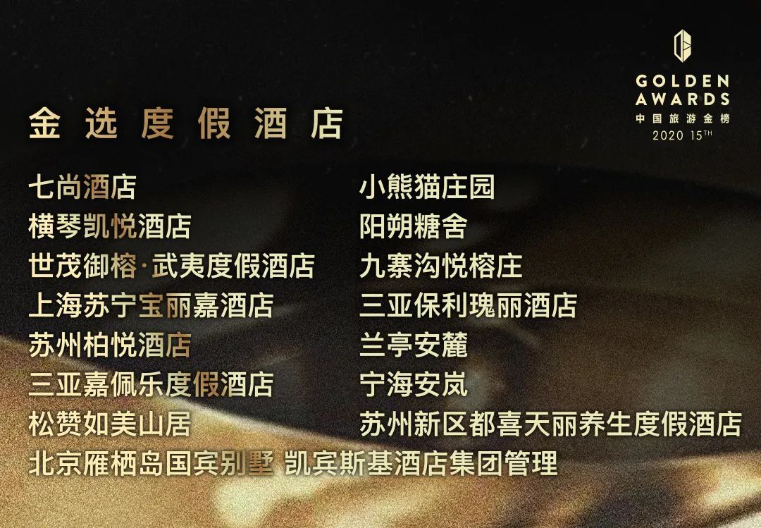 “新开业”不再作为2020年的入选标准,而如何通过别具特色的市场创意吸引客人重归酒店,将成为今年能否上榜的最重要的评选标准。我们金选的度假酒店将拥有鲜明的度假感,无论设计风格、景观营造、服务细节还是活动安排,需要看出度假村在今年为打造独特难忘的度假体验所付出的巧思,为住客带来惊喜。同时,酒店拥有较强的综合实力,在周边景观、软硬件标准等方面都能给住客以惊喜。