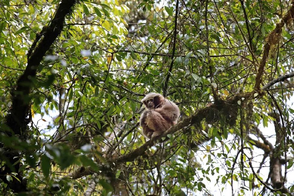 “两年前定种的新种‘天行长臂猿’,就是我还在保护区工作时做的习惯化,最开始的工作非常的困难,我们听到叫声找过去,这些长臂猿早就已经不在了。但在接下来的几年中,它们和我们的‘安全距离’不断缩短,我们终于能够得到比较清晰的天行长臂猿照片了。”