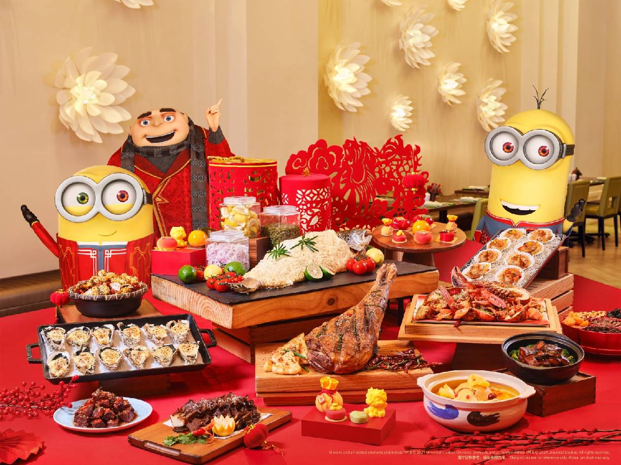 同时,北京环球度假区的两家度假酒店也将营造沉浸式新春体验。诺金度假酒店将推出禾家中餐厅-新春团圆宴多款新春团圆宴菜单,并将于除夕夜携《功夫熊猫》阿宝及悍娇虎见面会为宾客送上新年美好祝愿。环球影城大酒店将供应环球影城莲花园-新春合家欢自助晚餐,宾客将于1月27日与身着新春服饰的小黄人鲍勃和凯文同庆佳节;环球影城莲花园新春主题神偷奶爸角色互动早餐也将火热回归,迎接宾客欢聚新春。