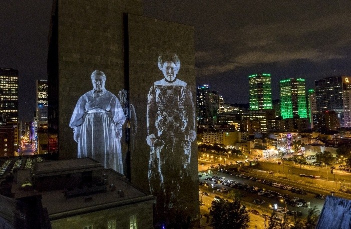 四季交替,日夜不息,蒙特利尔始终充满着活力。白天的城市被各种活动、展览和聚会充满,吸引着成千上万热爱文化、亲近自然和追求潮流的人们前来享受其多样的体验,而每当夜幕降临,这个城市便展现出另一重温柔而迷人的面貌。漫步于市中心的战神广场与潘托特朗布勒,城市记忆幕墙幻灯的光影投影自环绕的古墙与脚下的土地缓缓舞动。一幕幕角色以诗意、梦幻又不失灵动的方式跃然出现,仿佛在为游客讲诉着这座城市在岁月长河里沉淀的故事与变迁。